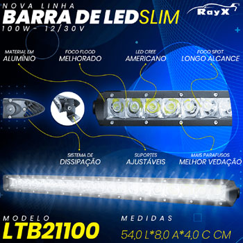 FAROL DE LED SLIM C/SUPORTE DE FIXACAO 12/24 V 100W 54,0LX8,0AX4,0 C CM - LTB21100